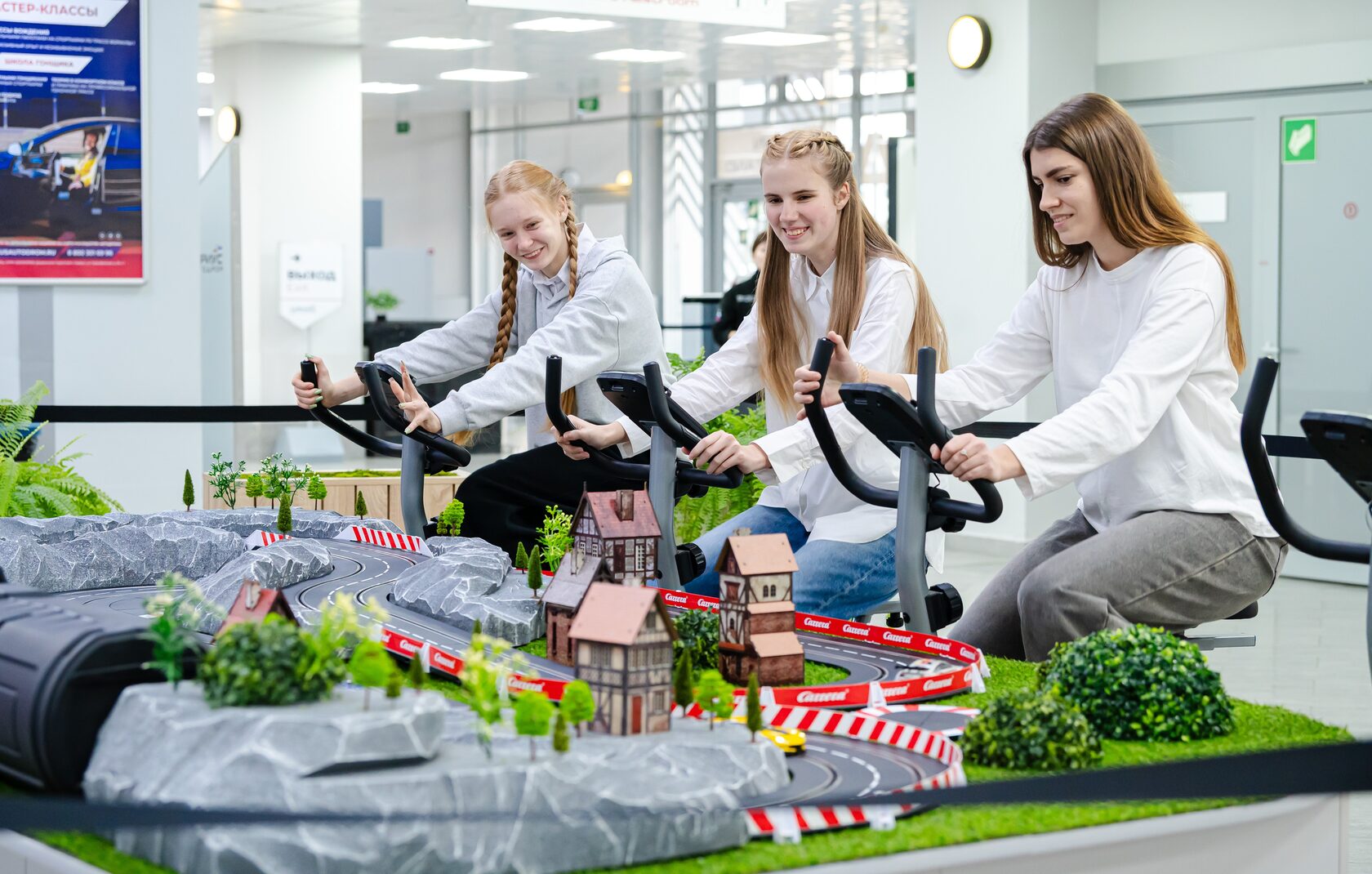 Тандем велоспорта и автоспорта – в новом аттракционе игровой зоны. Крутите педали на велотренажере и управляйте своим спорткаром, который мчится по трассе. Польза для здоровья, соревновательный азарт и отличный способ весело провести время с друзьями или семьей. Подробности и билеты на странице «Игровые активности».